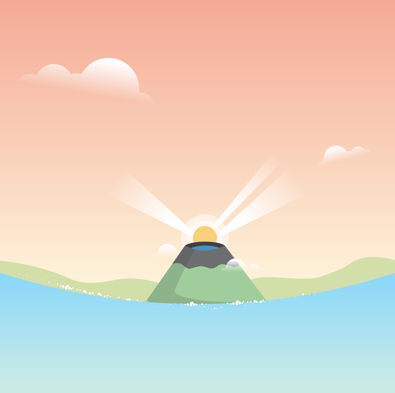 [EN] Hi. This is Urban Brush. The image below is a sample of ai illustration of a sunrise landscape of Mt. Halla in Jeju Island. This is a background illustration image centered on Mt. Halla in Jeju Island. This is an illustration image depicting the appearance of Mt. Halla in Jeju Island along with the sea. This is an illustration image suitable for use in categories related to Jeju Island, Mt. Halla, South Korea, the sea, waves, islands, travel, etc. Download the vector file of the Jeju Island Mt. Halla sunrise landscape illustration ai and use it for designs related to Jeju Island. If you need to request a graphic design, please search for “Urban Brush” on KakaoTalk and contact us. The included fonts are examples and are not included in the file. Please contact the font company for usage.