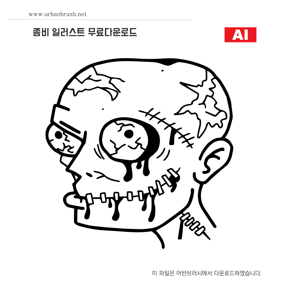 [KR] 안녕하세요. 어반브러시의 Master Creator Tommy입니다. 아래 이미지는 좀비 스케치 일러스트 ai 파일 이미지입니다. 파일을 다운받아서 좀비와 관련된 이미지를 제작해보세요.