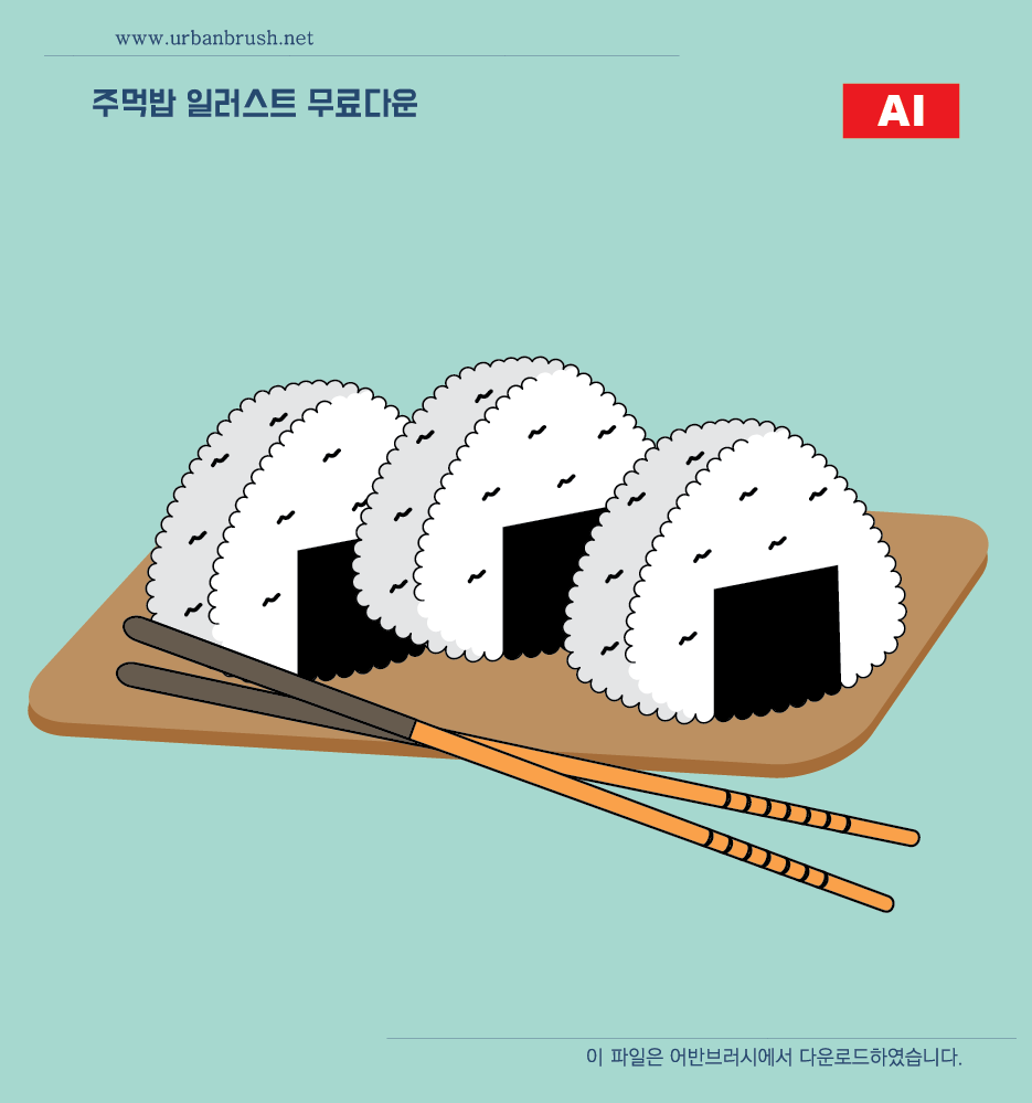 [KR] 안녕하세요. 어반브러시의 Master Creator Tommy입니다. 아래 이미지는 주먹밥 일러스트 이미지 ai 파일 샘플입니다. 삼각형 모양의 일반적인 김밥형식의 주먹밥 일러스트 이미지입니다. 분식점이나, 음식점, 편의점 등에서 활용할 수 있는 주먹밥 일러스트 이미지입니다. 파일을 다운받아서 주먹밥과 관련된 디자인물에 활용해보세요.