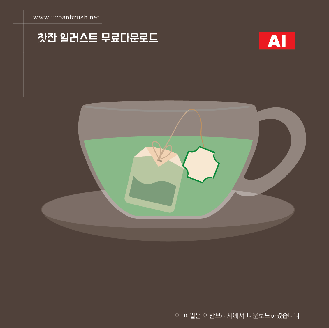 [KR] 안녕하세요. 어반브러시의 Master Creator Tommy입니다. 아래 이미지는 찻잔 일러스트 ai 이미지 샘플입니다. 찻집, 커피전문점, 카페 등에서 활용할 수 있는 일러스트 이미지입니다. 투명컵에 녹차티백으로 담겨진 녹차를 묘사한 일러스트 이미지입니다. 파일을 다운받아서 찻잔과 관련된 디자인물에 참고하세요.