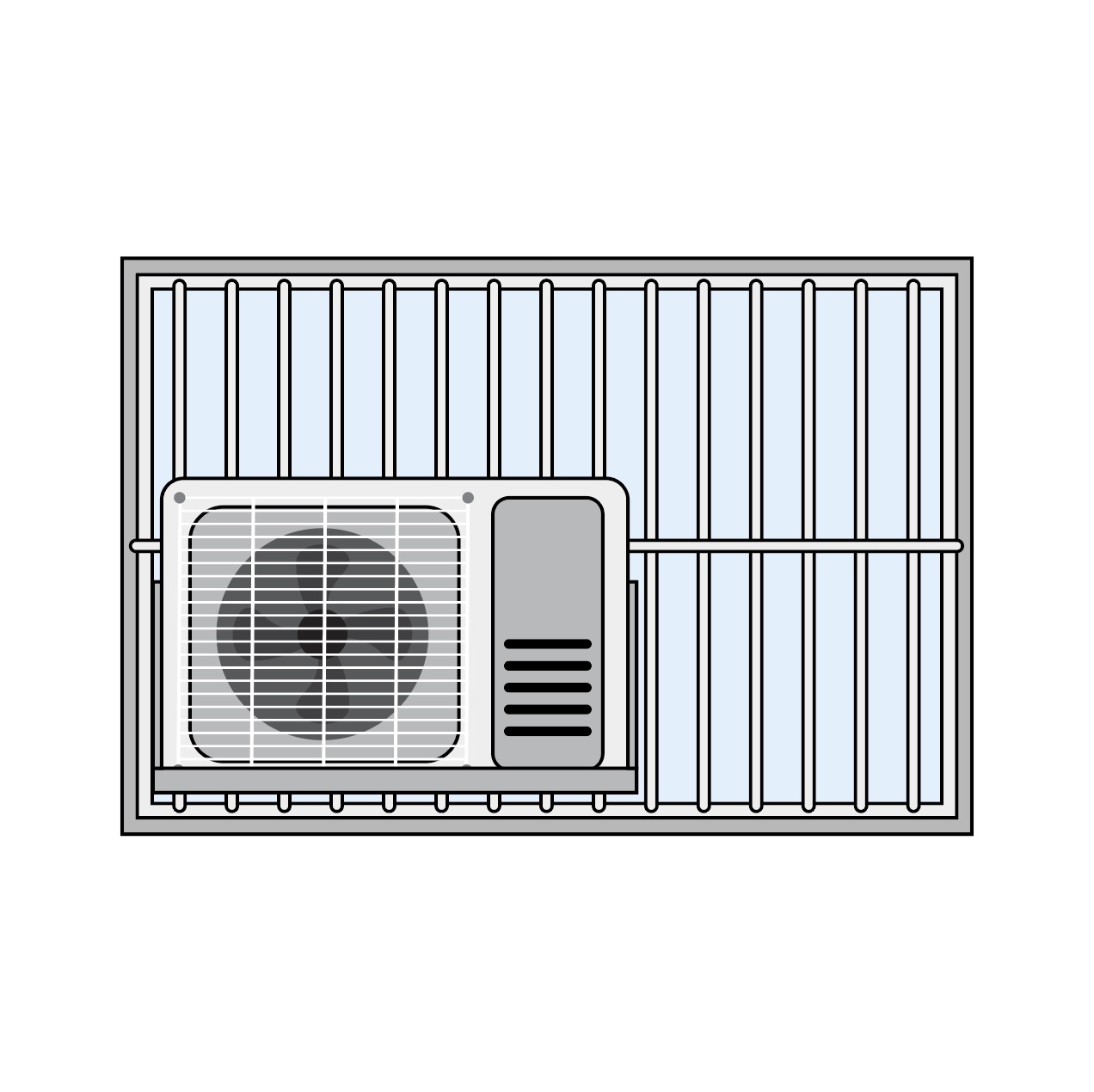 [EN] Hi. It is an urban brush. The image below is a sample window air conditioner outdoor unit illustration. It is an illustration image expressing the outdoor air conditioner hanging on the window. It is an illustration image depicting the outdoor unit connected to the air conditioner hanging on the window. It is an illustrative image suitable for use in categories related to windows, outdoor units, air conditioners, cooling devices, electronic products, and home appliances. Download the window air conditioner outdoor unit illustration vector file and use it for design related to the air conditioner. If you need a graphic design request, search KakaoTalk “Urban Brush” and contact us. The fonts included are examples and are not included in the file. Please contact the font company for usage.