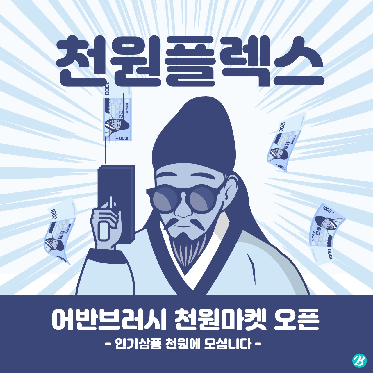 [EN] Hi. This is Urban Brush's Master Creator Tommy. The image below is a sample Thousand Won event banner illustration. This is a banner illustration image depicting the scene where a thousand won model, Toegye Lee Hwang, wearing sunglasses and spraying a thousand won with a money gun. This is an illustration image depicting the contents of Cheonnyang Department Store and Cheonwon Market. This is an illustration image suitable for use in categories related to 1,000won, event, 1,000won event, banner design, event banner, etc. Thousand Won Event Banner Illustration Illustration Download a vector file and use it in design materials related to event banner design, and if you need a graphic design request, search for KakaoTalk "Designer Tommy" and contact us. , Posters, leaflets, promotional materials, branding, characters, etc.).