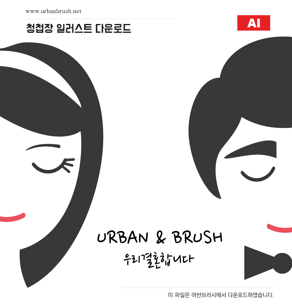 [KR] 안녕하세요. 어반브러시의 Master Creator Tommy입니다. 아래 이미지는 청첩장 샘플 일러스트 ai 파일 샘플입니다. 신랑과 신부의 얼굴로 채워진 심플한 청첩장 샘플 디자인입니다. 소박하고 간소한 느낌을 줄 수 있는 결혼식 청첩장 일러스트입니다. 결혼식 순서지 등에도 활용할 수 있습니다. 파일을 다운받아서 청첩장 제작시 활용해보세요.