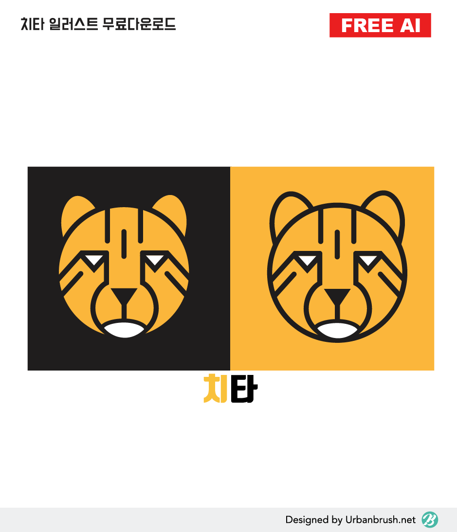 [KR] 안녕하세요. 어반브러시의 Master Creator Tommy입니다. 아래 이미지는 치타 얼굴 일러스트 ai 파일 샘플입니다. 치타얼굴을 로고 형태로 표현한 일러스트 이미지입니다. 동물을 주제로 하는 로고를 제작할 때 활용하기 적합한 일러스트 이미지입니다. 치타, 표범, 재규어, 퓨마 등과 같이 비슷한 종류의 맹수에 응용해서 사용할 수도 있습니다. 백터파일을 다운받아 치타와 관련된 디자인물에 활용해보세요.