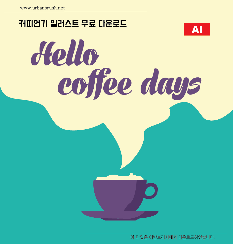 [KR] 안녕하세요. 어반브러시의 Master Creator Tommy입니다. 아래 이미지는 커피 연기 일러스트 ai 파일 샘플입니다. 커피 연기를 이용한 문구를 넣을 수 있도록 제작한 커피 연기 일러스트 이미지입니다. 커피전문점, 커피숍, 커피판매점 등에서 활용할 수 있는 간단한 일러스트 이미지입니다. 파일을 다운받아 커피와 관련된 디자인물에 활용해보세요.