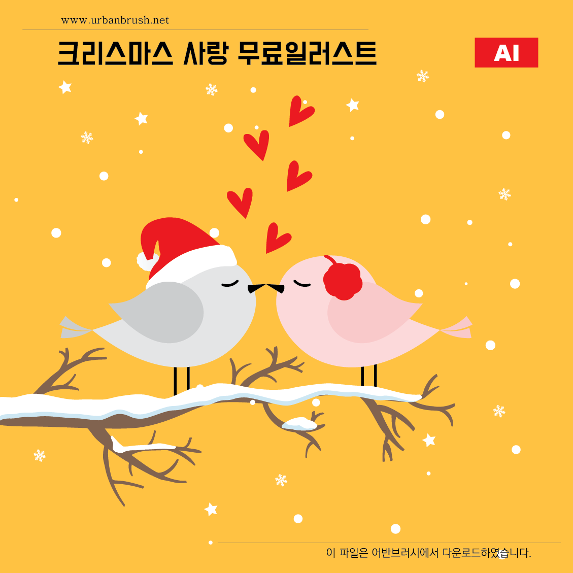 [EN] Hi. Urban Brush’s Master Creator Tommy. The image below is a sample of Christmas illustrations ai file with the theme of ‘Christmas Love’. It is an illustration image featuring the two maroon birds kissing and loving on a snowy tree. It is an illustration image that goes well with Christmas affection, love, love, confession, lover, couple and the like. Download the file and use it for Christmas related design.