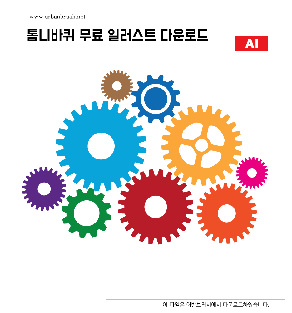 [KR] 안녕하세요. 어반브러시의 Master Creator Tommy입니다. 아래 이미지는 톱니바퀴 일러스트 ai 파일 샘플입니다. 다양한 톱나바퀴 이미지들이 서로 맞물려 있는 톱니바퀴 일러스트 이미지입니다. 산업, 아이디어, 과학 등과 같은 주제에서 많이 사용되는 톱니바퀴 일러스트 이미지입니다. 파일을 다운받아서 톱니바퀴와 연관된 디자인물에 활용해보세요.