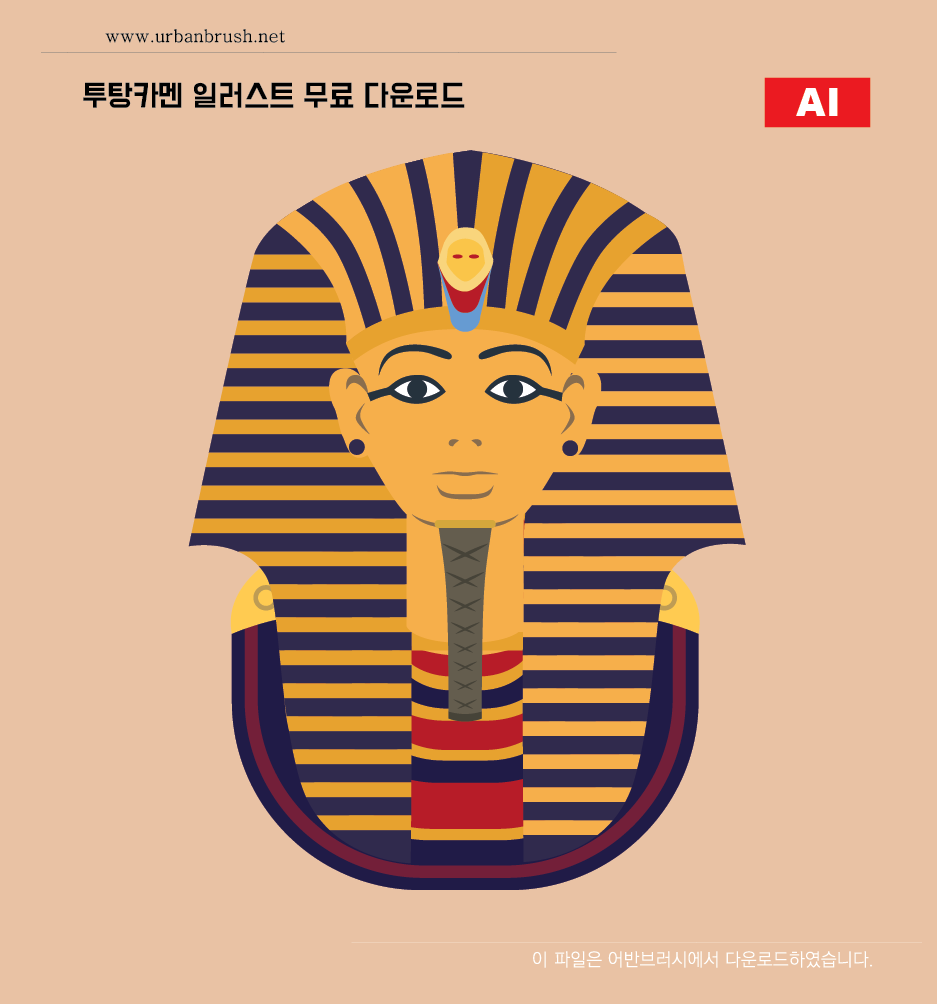 [KR] 안녕하세요. 어반브러시의 Master Creator Tommy입니다. 아래 이미지는 투탕카멘 일러스트 ai 파일 샘플입니다. 고대이집트의 유명한 상징물로 많이 사용되는 투탕카멘 두상 일러스트 이미지입니다. 고대이집트 역사나 문화, 교육자료 등에서 활용할 수 있는 일러스트 이미지입니다. 파일을 다운받아서 투탕카멘과 관련된 디자인물에 활용해보세요.