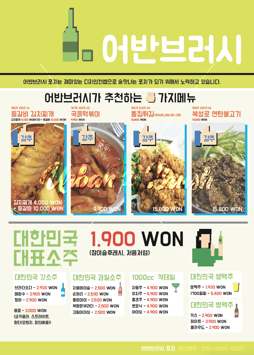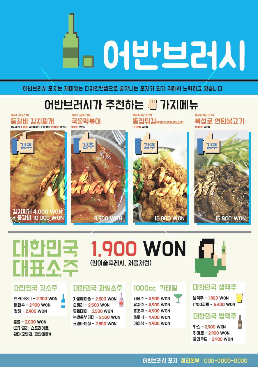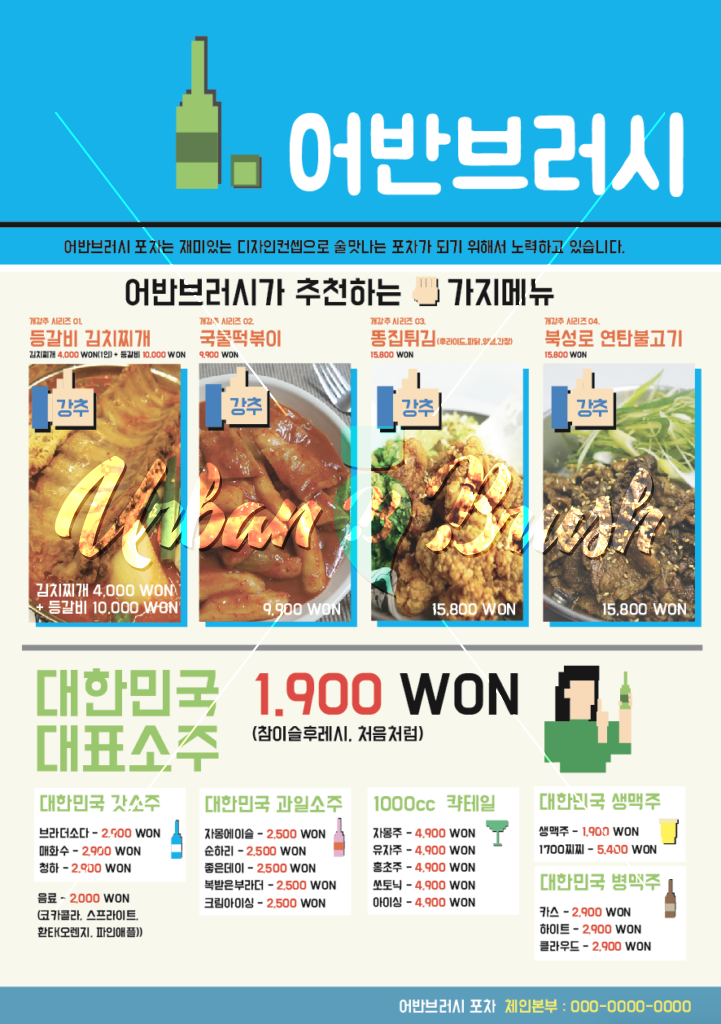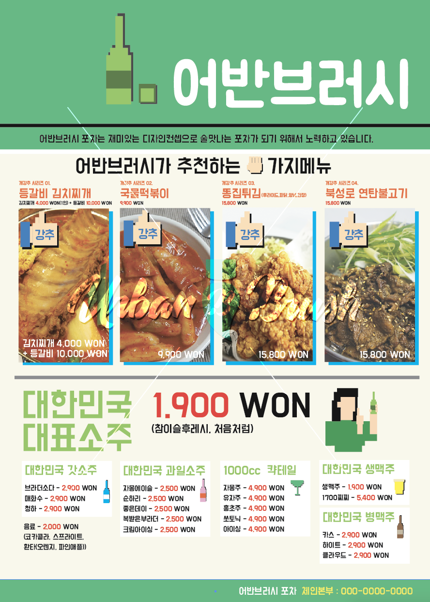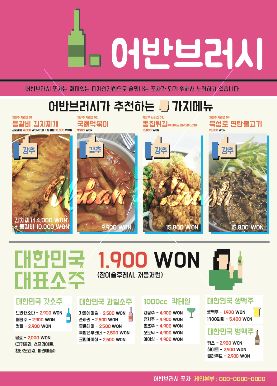 소주와 관련된 디자인이 포함되어 있기 때문에 소주취급점에서 활용하시는 것이 더 좋습니다.