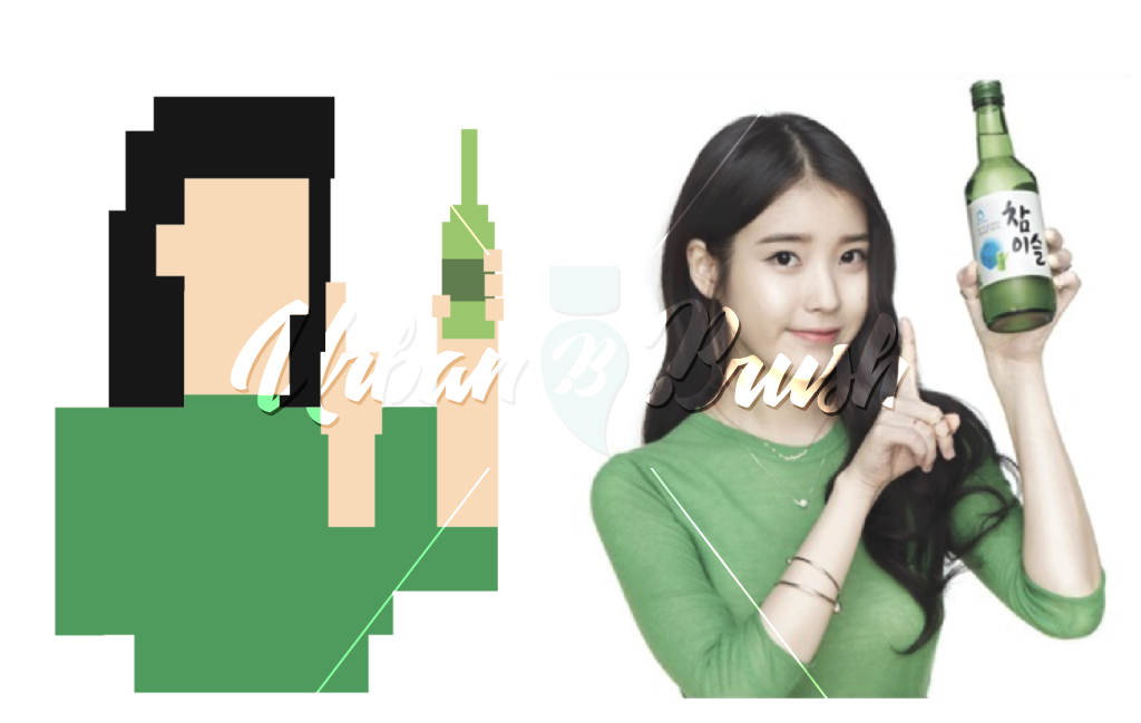 아래는 참이슬 아이유 모습을 마인크래프트 버전으로 각색한 디자인입니다.