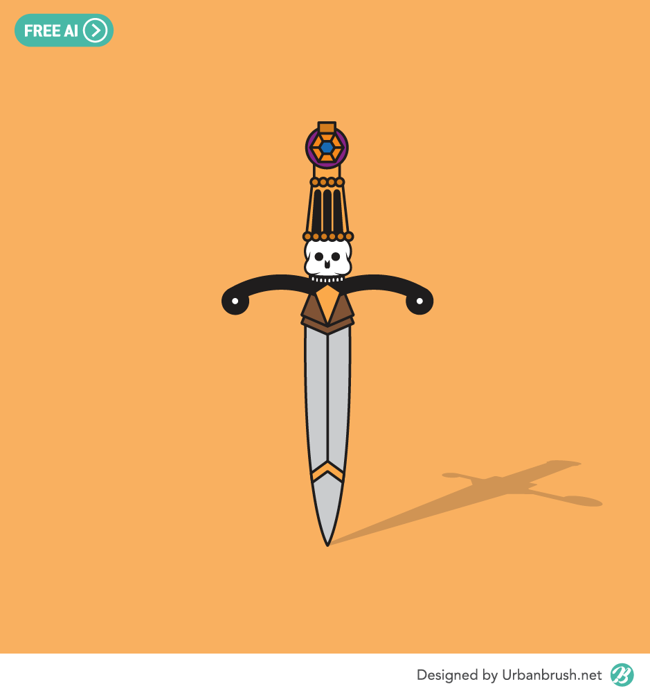 [EN] Hi. Urban Brush’s Master Creator Tommy. The image below is a sample illustration ai file. Ninja, swordsman, samurai, samurai used by the recognition, is an image depicting a dagger. It is an illustration file made with images that are decorated with skulls and jewels. Download the illustration vector file and apply it to the design related to the dagger.
