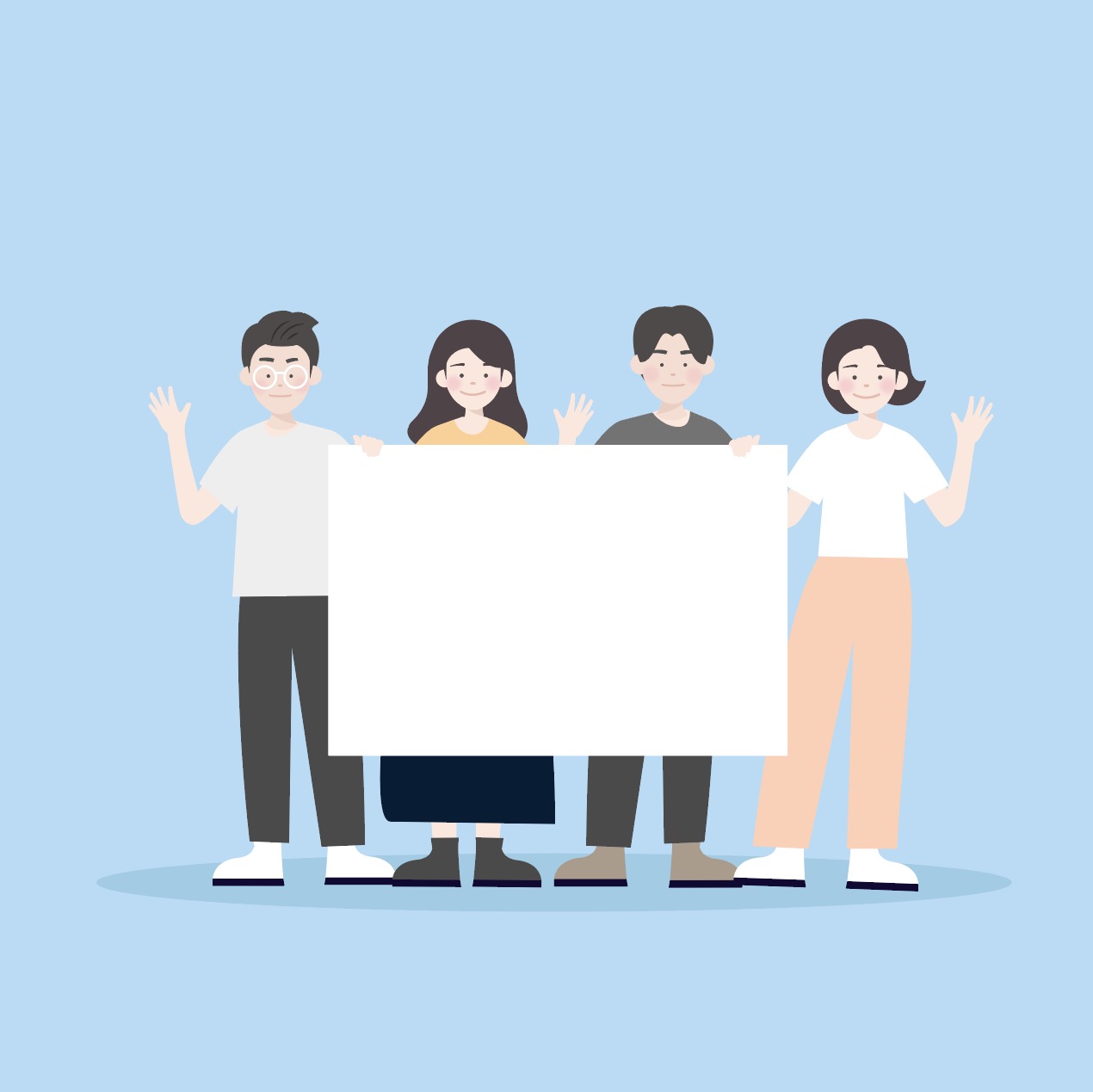 푯말 사람들 현수막 문구 일러스트에 대한 이미지 소스 공유 안내입니다. 반드시 본문의 내용을 읽고 이용해주시며, 무료 다운로드 및 사용과 관련된 규정은 하단의 이용약관을 확인해주시길 바랍니다. 다운로드 페이지에서 ai 파일 및 jpg 파일을 제공합니다.
