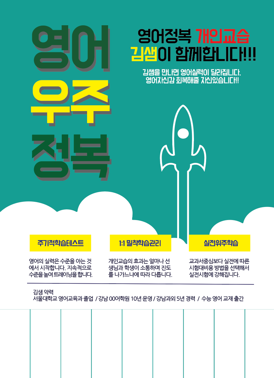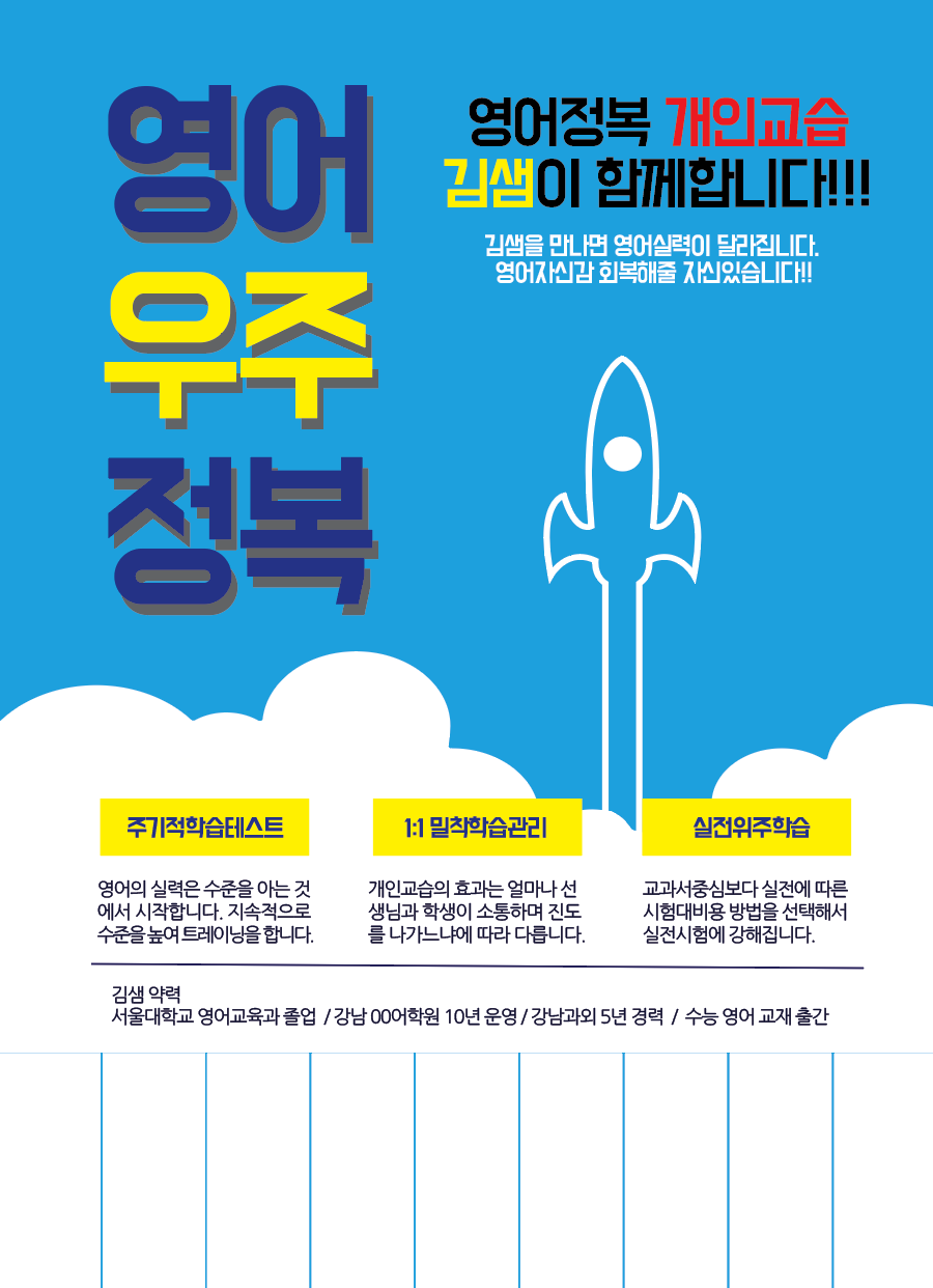 문구역시도 “영어우주정복”을 교체하여 “영어속성3개월”, “영어 단기간속성” 등으로 변경해서 사용하셔도 좋습니다.