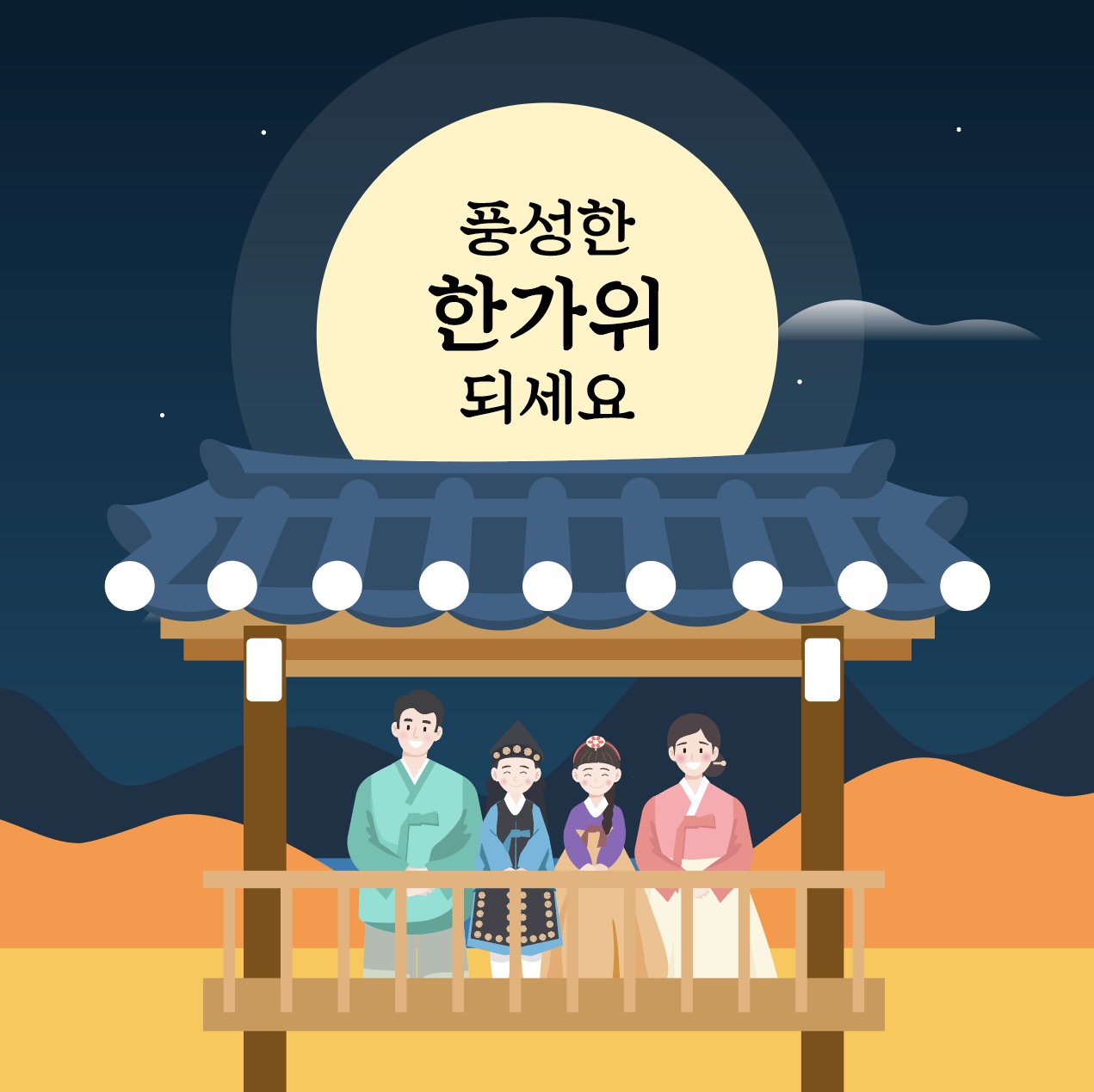 [EN] Hi. This is Urban Brush’s Master Creator Tommy. The image below is a sample of a Chuseok Chuseok wooden pavilion family greeting illustration ai. It is an illustration image expressing a family wearing hanbok greeting on a wooden pavilion. It is an illustration image depicting a family greeting Chuseok under a full moon. It is an illustration image suitable for use in categories related to Chuseok, Hangawi, full moon, family, hanbok, Chuseok greeting, Hangawi message, wooden pavilion, pavilion, tile roof, etc. Download the Chuseok Chuseok wooden pavilion family greeting illustration ai vector file and use it for designs related to Chuseok greetings. If you need a graphic design request, please search for “Designer Tommy” on KakaoTalk and contact us. The included fonts are examples and are not included in the file. Please contact the font company for usage.