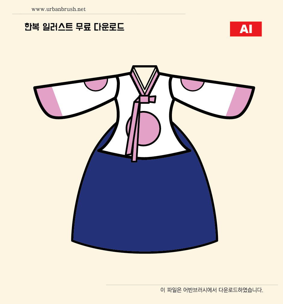 [KR] 안녕하세요. 어반브러시의 Master Creator Tommy입니다. 아래 이미지는 한복 일러스트 ai 파일 샘플입니다. 대한민국의 전통의상인 여성 한복 저고리 일러스트 이미지입니다. 왕후가 입는 한복의 느낌을 준 한복 일러스트 이미지입니다. 대한민국과 관련된 문화, 역사, 관광 등과 관련된 디자인물에 활용하기 적당한 일러스트 이미지입니다. 파일을 다운받아 한복과 관련된 디자인물을 제작하는데 활용해보세요.