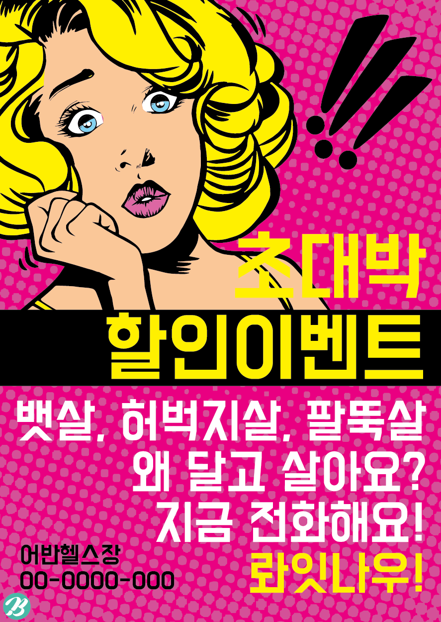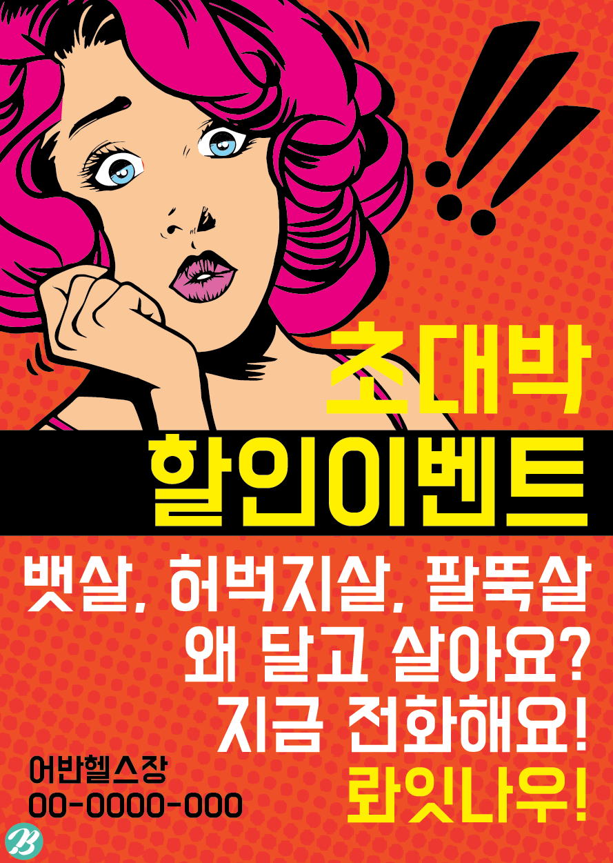 아래 이미지는 헬스장 전단지 팝아트 버전 일러스트 이미지 샘플입니다.