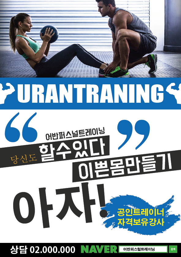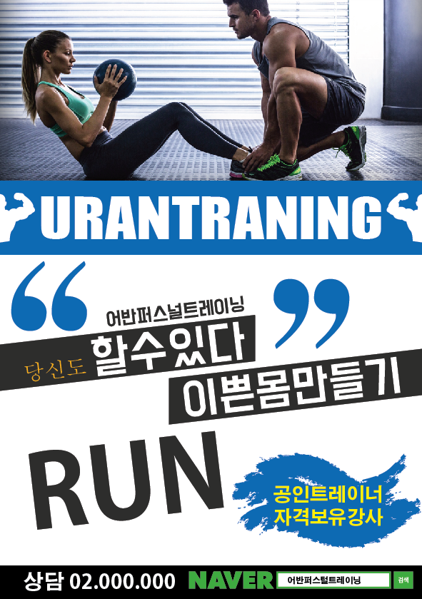 헬스장 또는 개인트레이닝샵에서 사용할 수 있는 전단지 시안입니다.