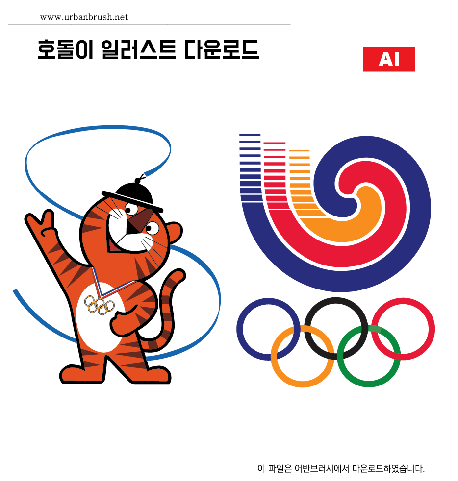 [EN] Hi. Urban Brush’s Master Creator Tommy. The image below is a sample of the ao file of the olympic illustration which was the Olympic Masseur in Seoul. It is a similar restored version because the originals of the Seoul Olympic Games are not shared online. Somewhat finer detail may be lacking. Download the file and use the 88 Seoul Olympic Hodori character to make related designs.