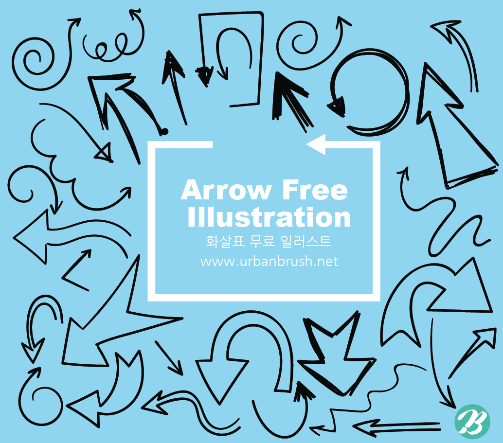 전형적인 화살표보다 아날로그적이고 불규칙한 디자인물에 적합한 손그림 일러스트 이미지입니다.