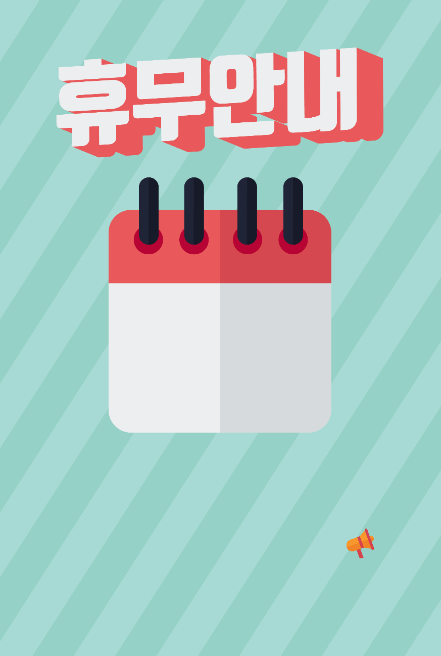 » 추천 카테고리 : 휴무안내, 휴무일안내, 공휴일안내, 공지사항, 임시휴업, 휴업안내, 폐점안내,