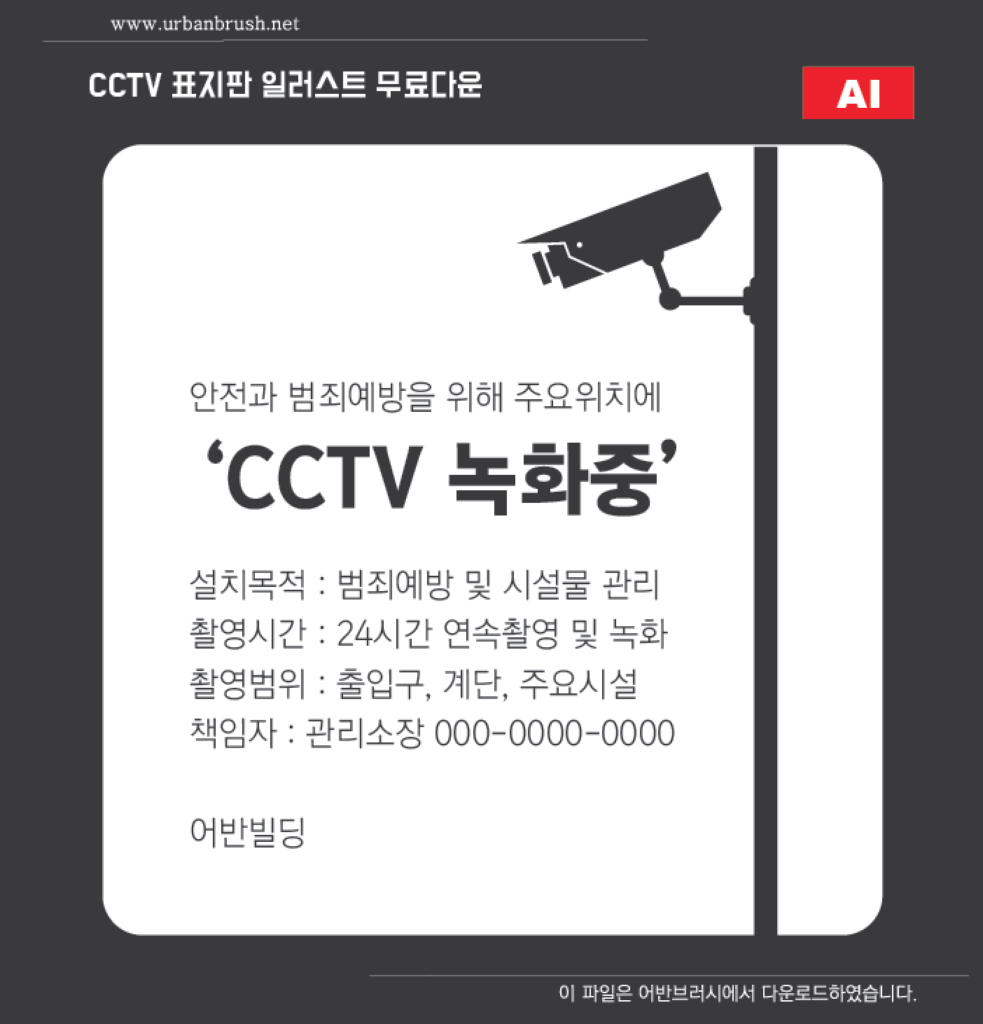 파일을 다운받아 CCTV 작동중 표지판을 만들어 보세요.