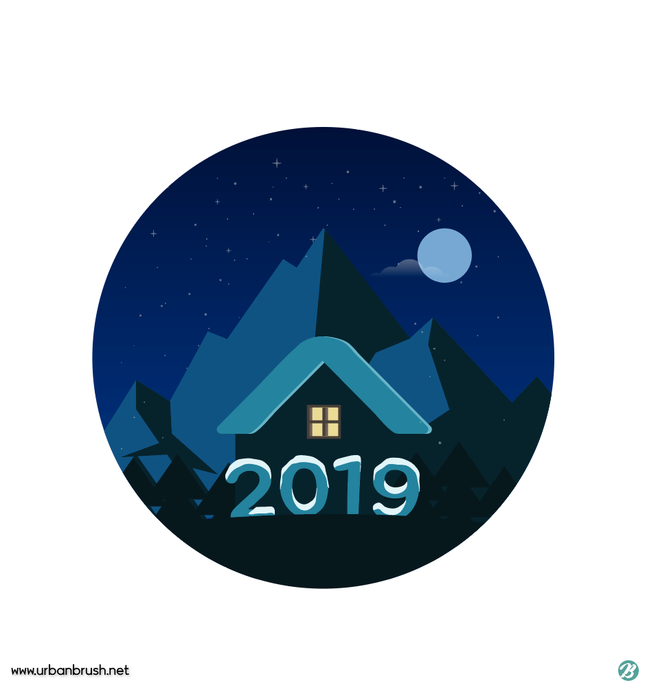 Hi. Urban Brush’s Master Creator Tommy. The image below is a sample 2019 ai free sample. Illustration image of a house under a night landscape. It is an illustration image depicting the house in the mountains and the 2019 lettering together. 2019, year of the year, cabin, house, house, night landscape, night sky, mountain, etc. are suitable for use in categories such as illustrations. 2019 house illustration ai Download free vector illustration file and use it for the design related to the new year.