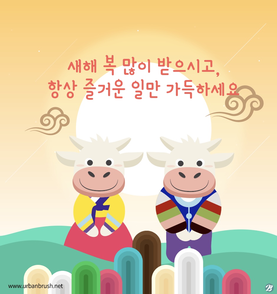 This is Urban Brush's Master Creator Tommy. The image below is a sample of 2021 New Year's greetings illustration ai download. An illustration image of a cow character wearing a hanbok greeting the New Year. This is an illustration image depicting a scene where cows greet the New Year. This is an illustration image suitable for use in categories related to New Year, New Year, 2021, New Year, Cow, Character, etc. 2021 New Year's Greetings Illustration ai Download Download the illustration vector file and use it in your design related to the New Year.