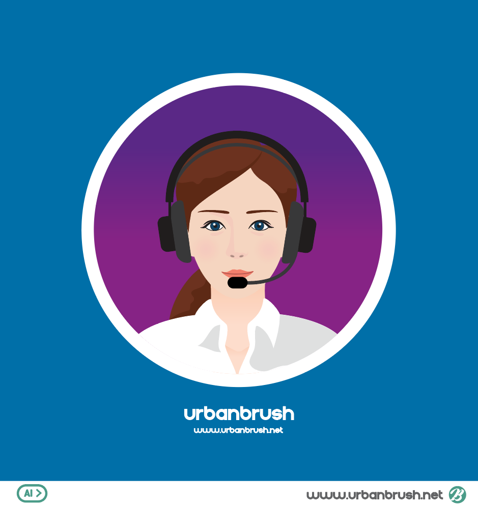 Hi. Urban Brush’s Master Creator Tommy. The image below is a sample agent ai file sample. An illustration image depicting a woman wearing a headset. An illustration image that depicts a woman wearing a headband, wearing a shirt, wearing headphones, and looking at the front. This image is suitable for use in categories related to managers, agents, telephone counseling, customer centers, and AS centers. Download the agent illustration vector file and apply it to the design related to the telephone.