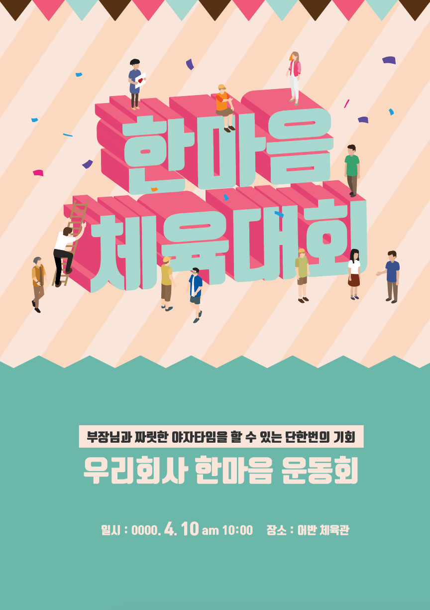 Hi. Urban Brush’s Master Creator Tommy. Below is a sample athletic contest poster illustration ai file. A poster illustration image sample that can be used for athletic meet or athletic meet. “One Heart Athletic Competition” 3D typography is composed of various characters together. In order to give a festive atmosphere, we have colored karendas at the top. At the bottom of the page, you can add content appropriate for each group. It is an illustrative image suitable for athletic meet, athletic meet, unity contest related category. Sports Illustrations Poster Illustrations Download the vector files and use them to make posters.