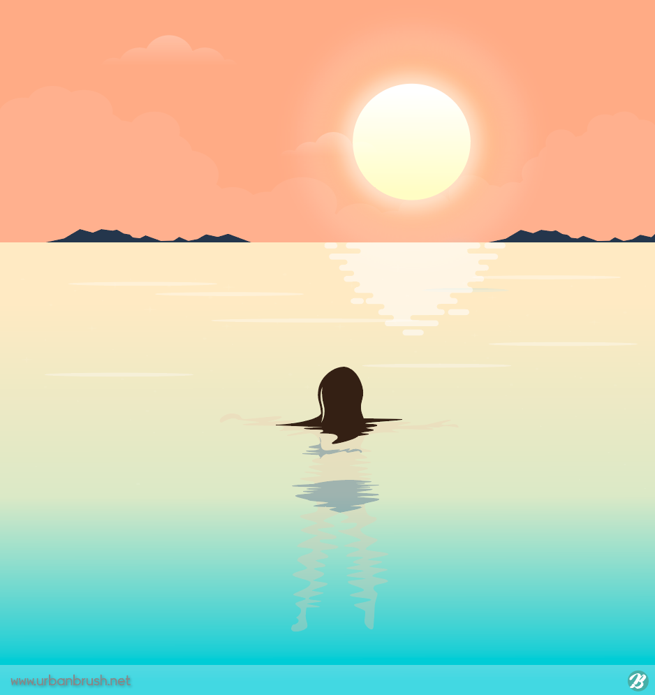 Hi. Urban Brush’s Master Creator Tommy. The image below is a sample of ai file illustration of a beach. It is an illustration image expressing a woman enjoying the bathing in the beach where the setting sun rises. It is expressed in the feeling that the body is spreading by the wave in order to express the state that only the face protrudes out of the water and the body enters into the sea water. Ideal for use in categories such as beaches, beaches, vacations, summer, vacations, recreation, and sunsets. Download the bathing beach illustration vector file and use it for design related to swimming.