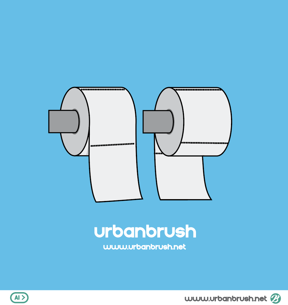 Hi. Urban Brush’s Master Creator Tommy. The image below is a sample of toilet paper illustrations ai file. It is an illustration image expressing the state that the roll toilet paper hangs on the toilet paper hook of the bathroom. One with the outside facing the toilet paper and one with the inside facing. Bathroom, toilet paper, toilet paper, stool, toilet, etc. It is suitable for use in categories such as illustrations. Bathroom Toilet Paper Illustration Download the vector file and use it for toilet related design.