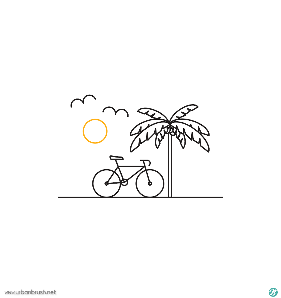 Hi. Urban Brush’s Master Creator Tommy. The image below is a sample of ai file on a beach bicycle illustration. It is an illustration image that reminiscent of a beach bike trip and a movement on the beach. The palm trees, seagulls and sun which symbolize the beach are represented by simple lines, and the bicycles below the palm trees are combined together. Beach, summer, vacation, bicycle, exercise and other categories are ideal for use in the illustrations. Download the beach bicycle illustration vector file and apply it to the design related to exercise.