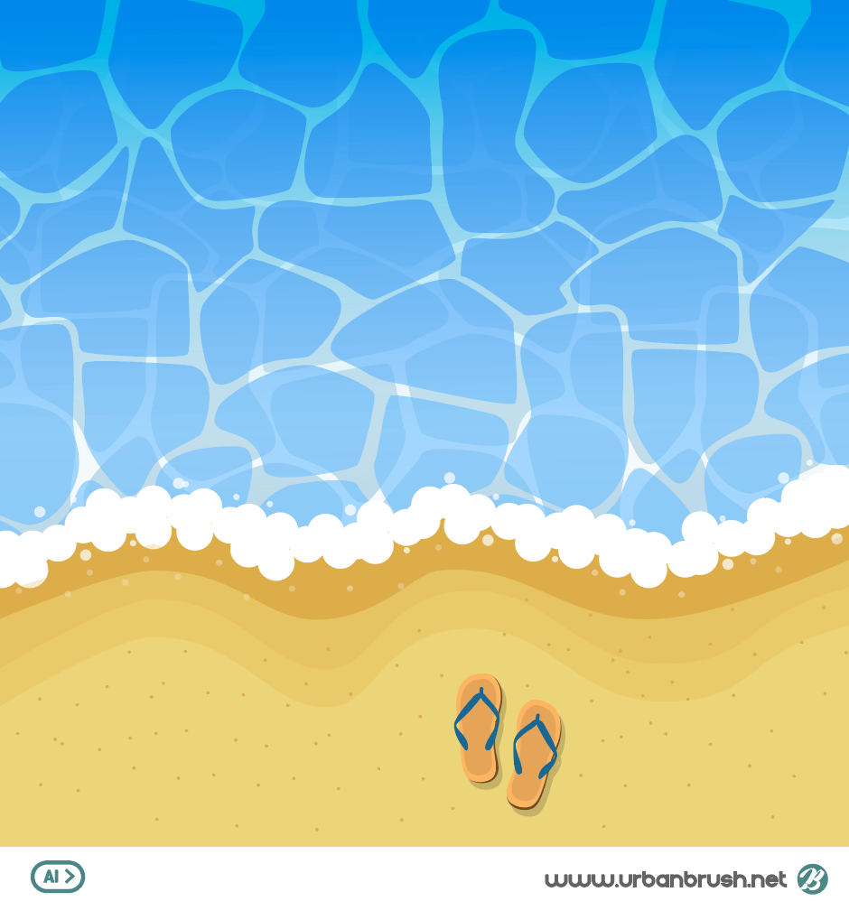 Hi. Urban Brush’s Master Creator Tommy. The image below is a sample of ai file on the beach white sandy beach. It is an illustration image that expresses a white sand beach. The waves of the sea, the calm waves coming to the shore, and the beach sand together. We have put together a pair of slippers to express the feeling of summer vacation or relaxation. Ideal for use in categories related to beaches, beaches, white sandy beaches, beaches, and the sea. Download the white beach illustration vector file and use it for your holiday related design.
