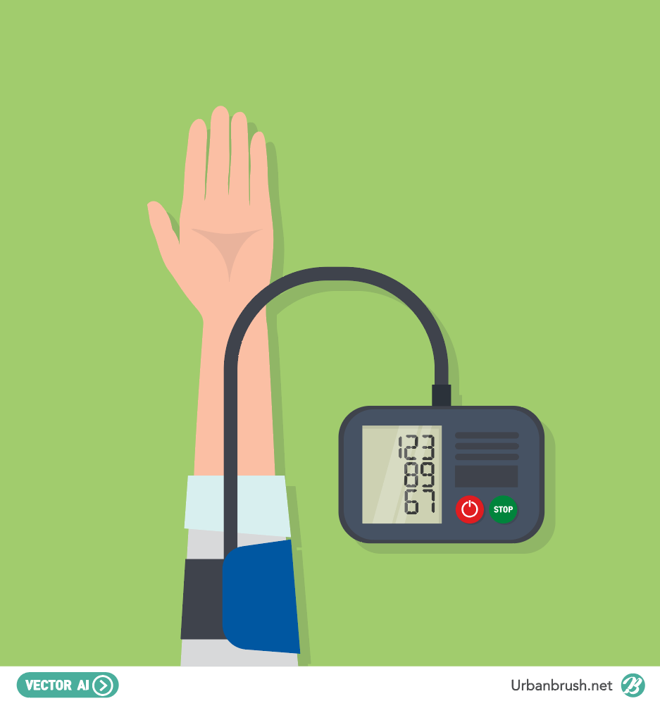 Hi. Urban Brush’s Master Creator Tommy. Below is a sample of blood pressure measurement illustration ai file. It is an illustration image depicting a scene measuring blood pressure with an electronic blood pressure monitor. This is an illustration image that depicts a scene in which a patient is stretching his hand and measuring his blood pressure by wearing a narrowing system on his arm. Health screening, blood pressure, hands, blood pressure monitor, blood pressure measurement, hospitals, etc. are suitable for use in categories such as illustrations. Download blood pressure measurement illustration vector file and apply it to health related design.