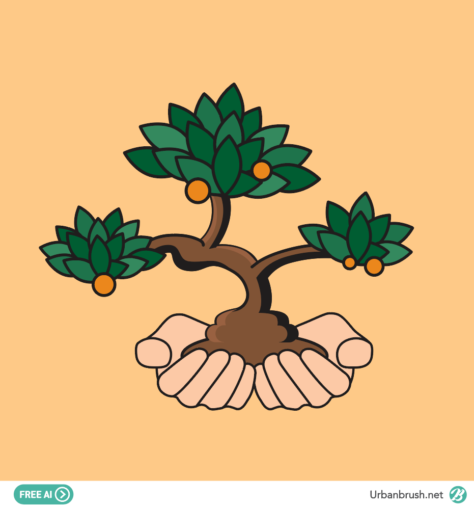 Hi. Urban Brush’s Master Creator Tommy. The image below is a sample bonsai illustration ai file. It is an illustration image depicting a person holding a bonsai with both hands. It is an illustration image that depicts a scene in which a small tree has fruit and leaves, and this tree is lifted by hand. Bonsai, pots, trees, small trees and related categories are suitable for use in the illustration image. Download bonsai illustration vector file and use it for design related to pots.