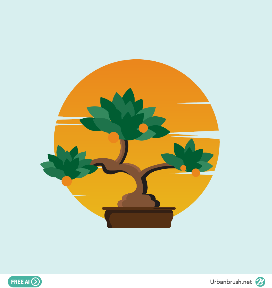 Hi. Urban Brush’s Master Creator Tommy. The image below is a sample bonsai illustration ai file. An illustration image depicting a small tree planted in a flowerpot. It is an illustration image that expresses the sunset of yellow in the background and the small tree bonsai which has the green leaf with the fruit in the flowerpot. Bonsai, trees, pots, leaves and other categories, such as illustrative image is suitable for use. Download bonsai illustration vector file and use it for design related to pots.