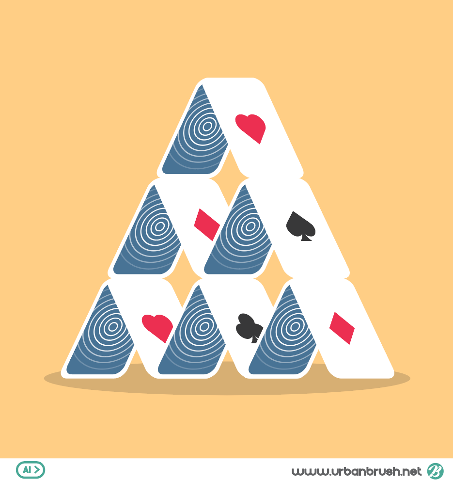 Hi. Half Brush is Master Creator Tommy. The image below is a sample card ai file illustration. It is an illustration image that expresses the card house piled up using a card used for poker. This is an illustration image depicting a card house stacked on top of each other by two cards, and both sides of the card are represented. This is an illustrative image suitable for categories related to card houses, poker, cards, games, card houses, and more. Card House Download the illustration vector file and apply it to the design related to the card game.