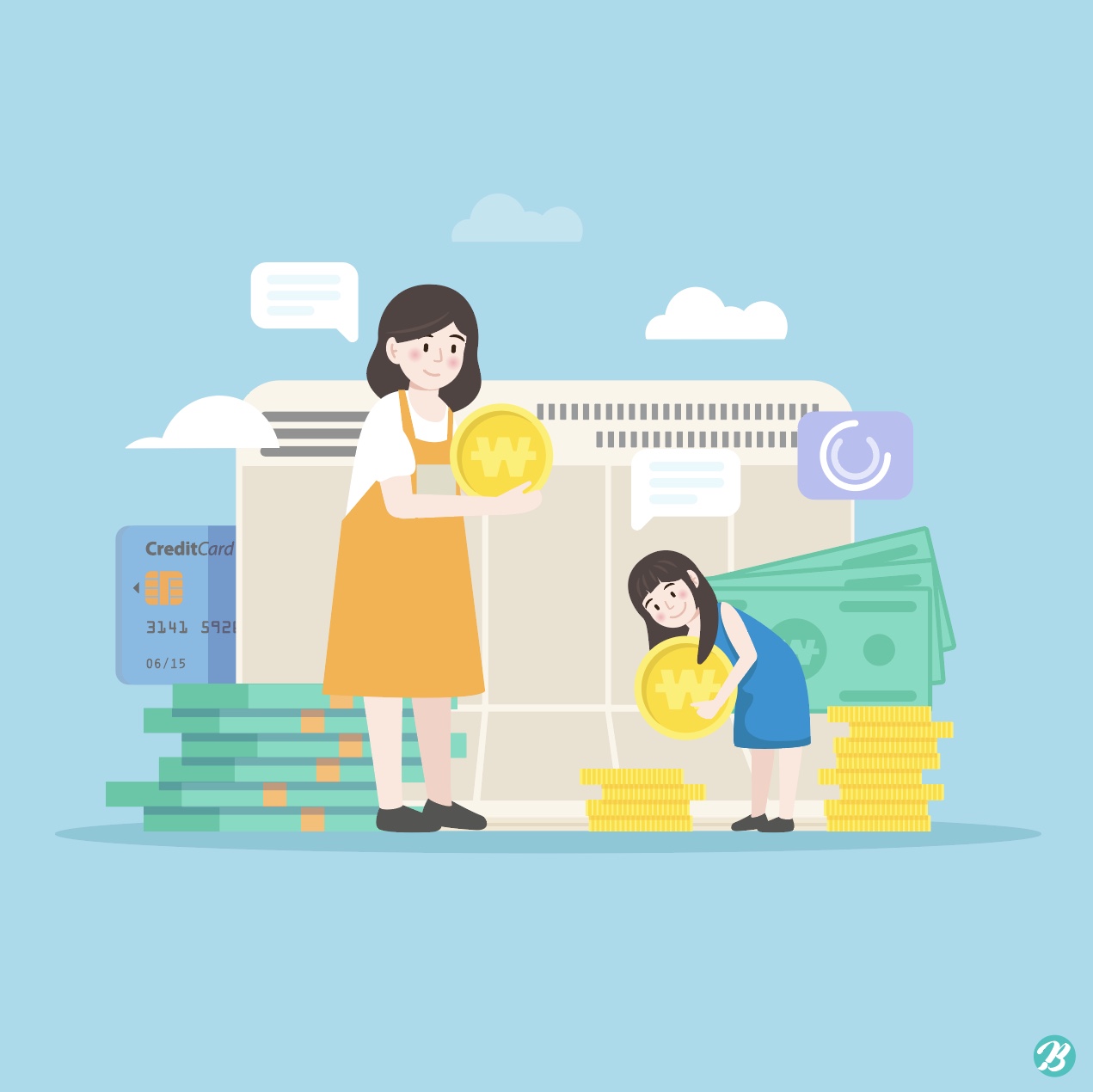 Hi, This is Tommy, Master Creator of Urban Brush. The image below is a sample of children’s economic education illustration. It is an illustration image expressing a mother and daughter in items related to finance. It is an illustration image depicting parents and economic education to children. It is an illustrative image suitable for use in categories related to children, education, finance, economy, passbook, money, currency, banknotes, coins, etc. Download the children’s economic education illustration vector file and use it for design related to finance. Included fonts are examples and are not included in the file. Please inquire with the font company for use.
