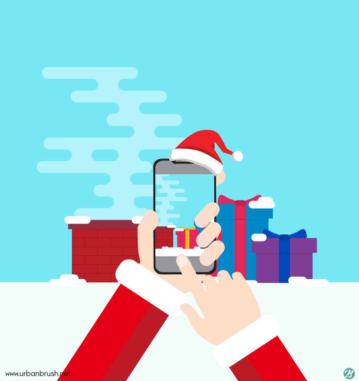 Hi. Urban Brush’s Master Creator Tommy. The image below is aa free sample of a Christmas certified shot illustration. It is an illustration image expressing a scene in which a person wearing a Santa dress is shooting a Christmas present on a smartphone. It is an illustration image depicting a scene taking a picture of a gift box placed next to a chimney. This image is suitable for use in categories related to Christmas, Christmas, gift boxes, certification shots, and Santa. Christmas Certified Shot Illustration ai Free Illustration Download the vector file and use it for design related to Christmas.