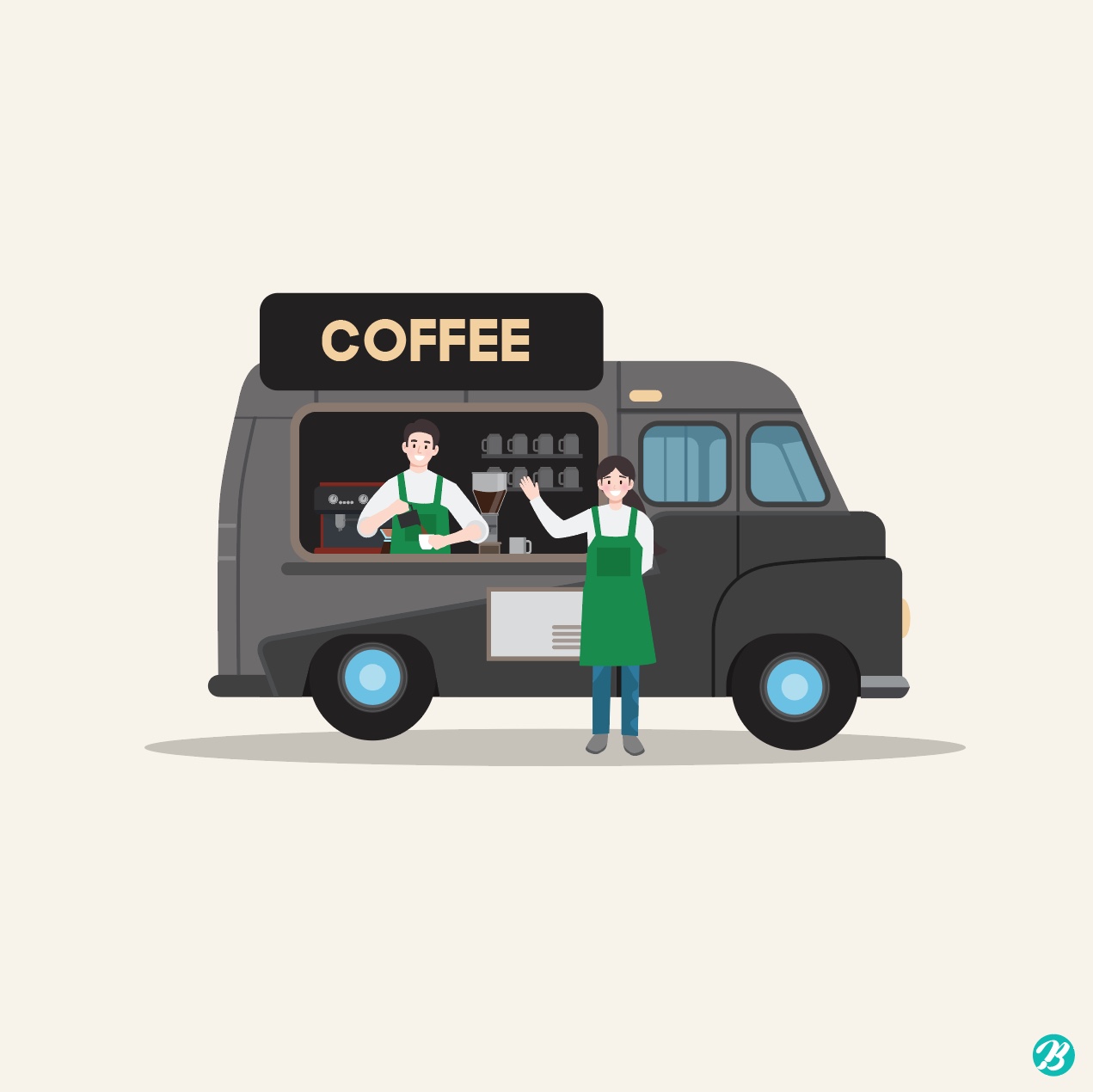 This is Tommy, Master Creator of Urban Brush. The image below is a sample coffee food truck couple illustration. It is an illustration image expressing a food truck couple selling coffee. It is an illustration image depicting a couple selling coffee in a truck. It is an illustrative image suitable for use in categories related to food trucks, coffee, cafes, food truck cafes, and baristas. Download the coffee food truck couple illustration illustration vector file and use it for design related to the truck cafe, and if you need a graphic design request, please search Kakao Talk "Designer Tommy" and contact us (work request field: logo production, branding, flyers , posters, leaflets, promotional materials, branding, characters, etc.).
