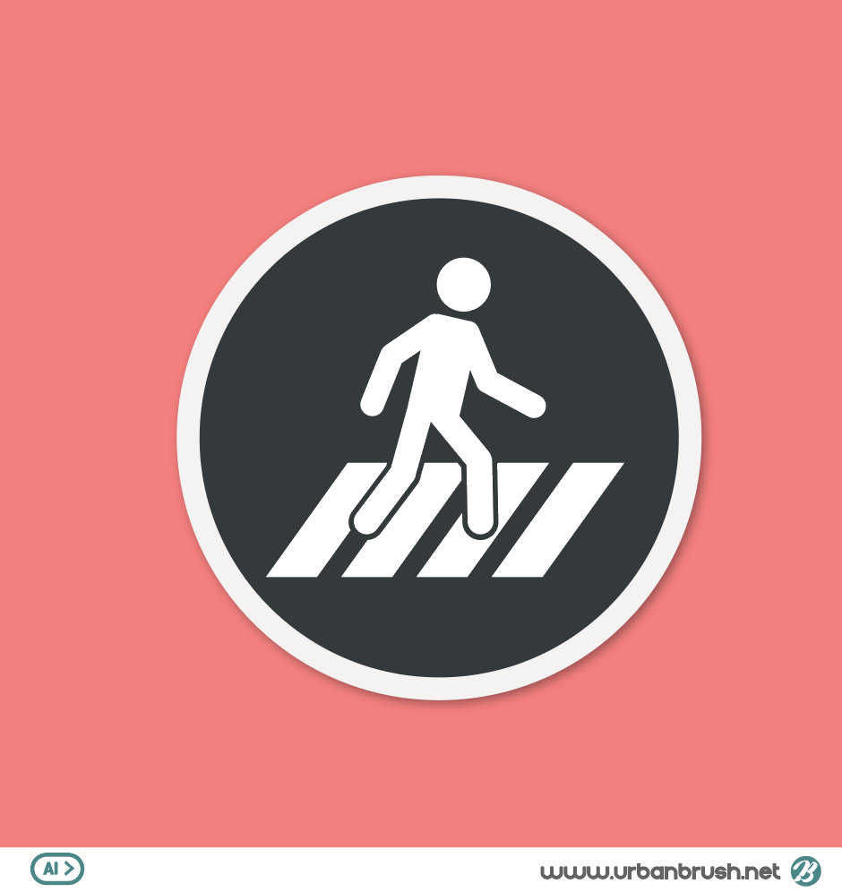 Hi. Urban Brush’s Master Creator Tommy. The image below is a crosswalk icon illustration ai file sample. Illustration image depicting a person walking on a pedestrian crossing. It is an illustration image that expresses a person walking a general crosswalk. It is an illustrative image suitable for categories such as pedestrian crossing, traffic safety, signs, road traffic, pedestrian, etc. Download the pedestrian icon illustration vector file and apply it to the design related to traffic safety.