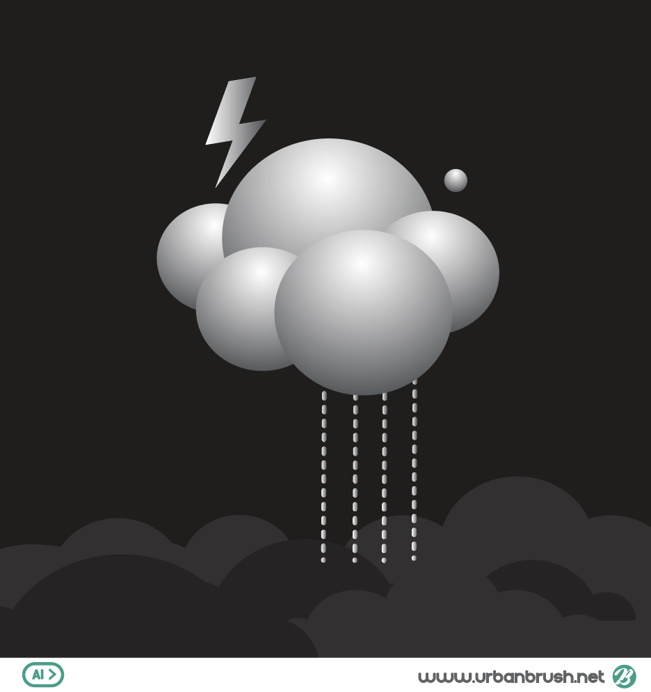 Hi. Urban Brush’s Master Creator Tommy. The image below is a sample of auric illustration ai file. It is an illustration image that lightning and the gray of the light cloud are expressed together. It expresses a dark cloud accompanied by rain and thunder. It is an illustrative image suitable for use in categories such as cloudy sky, thunder, lightning, rain, showers, weather, and more. Download the cloudy illustration vector file and apply it to the weather related images.