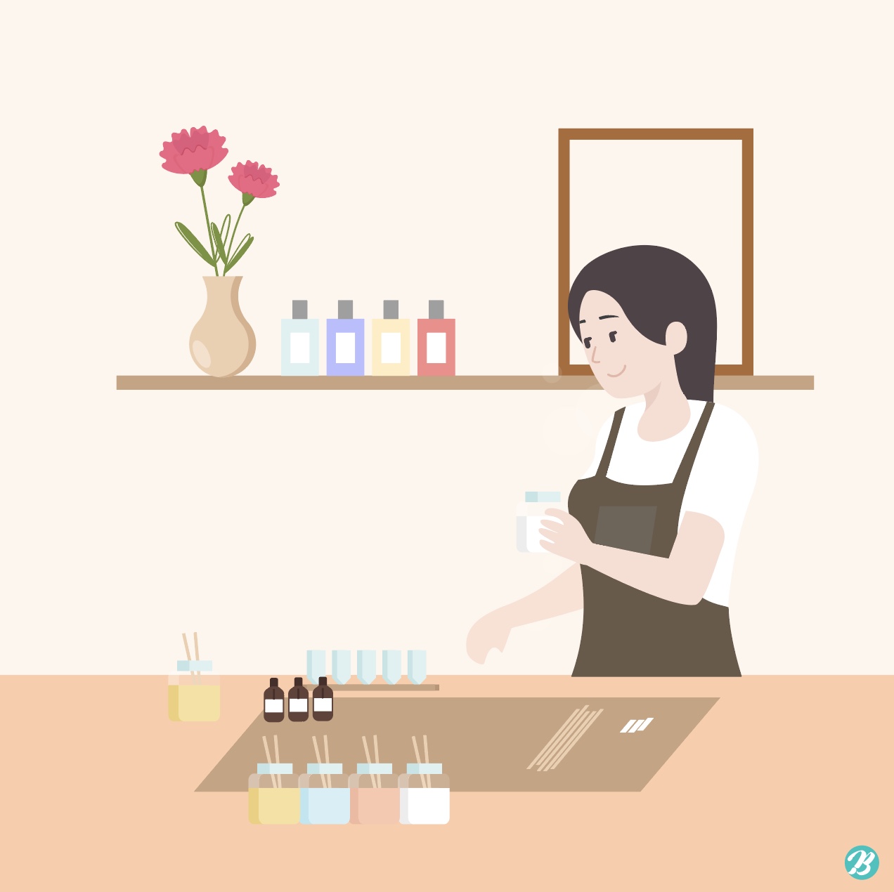 Hi, This is Tommy, Master Creator of Urban Brush. The image below is a sample diffuser workshop illustration. It is an illustration image expressing a woman making a diffuser. It is an illustration image depicting a studio that makes perfumes and diffusers. This is an illustrative image suitable for use in categories related to workshops, diffusers, perfumes, and workshops. Download the diffuser studio illustration vector file and use it for design related to the studio. If you need a graphic design request, please search KakaoTalk “Designer Tommy” and contact us. Included fonts are examples and are not included in the file. Please inquire with the font company for use.