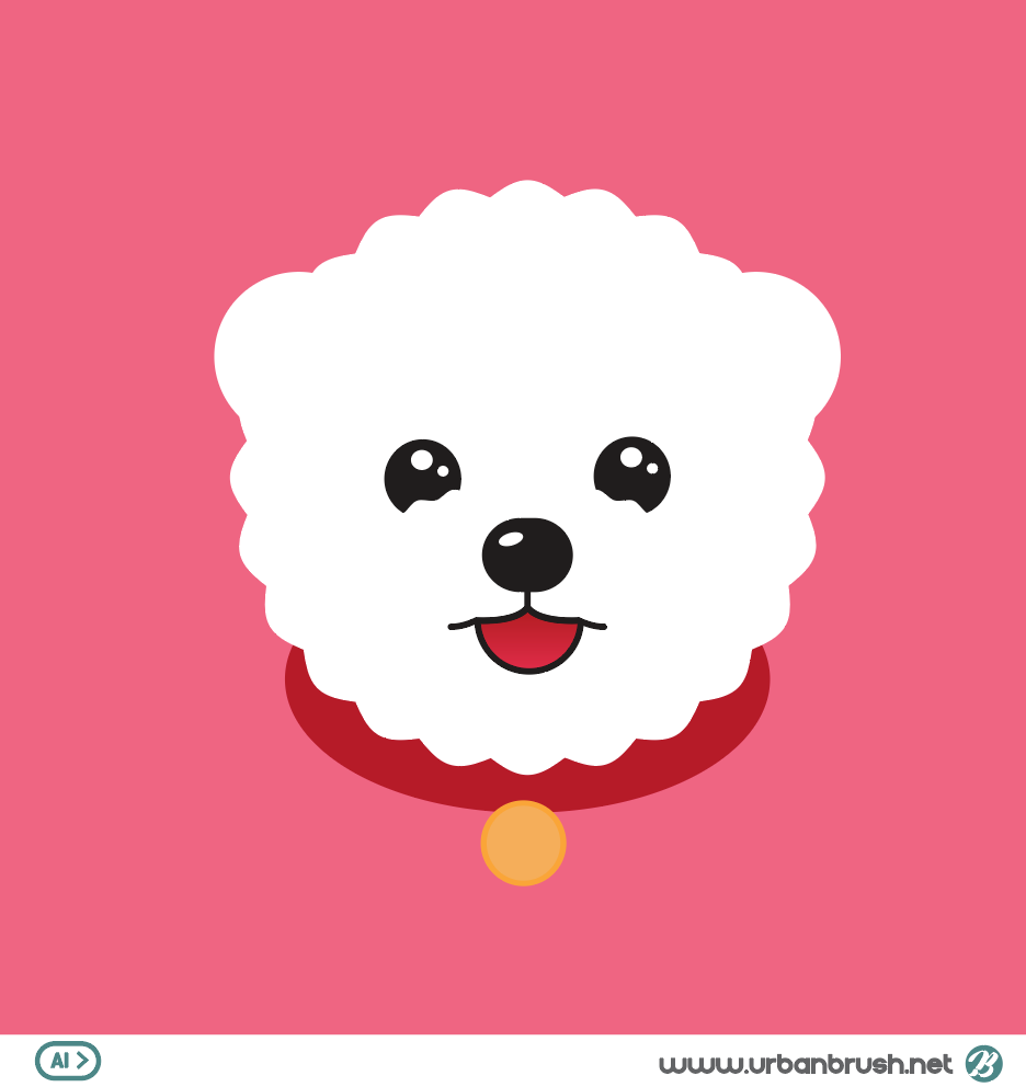 Hi. Urban Brush’s Master Creator Tommy. The image below is a sample dog illustration ai file. It is an illustration image that expresses how a puppy dog is laughing. It is an illustrated image that can be reminiscent of a Bichon or a Maltese puppy and depicts it as if you are wearing a necklace on your neck. This image is suitable for use in categories such as dogs, dogs, dogs, companion dogs, animals, companion animals, and pets. Download the dog illustration vector file and apply it to the design related to your pet dog.