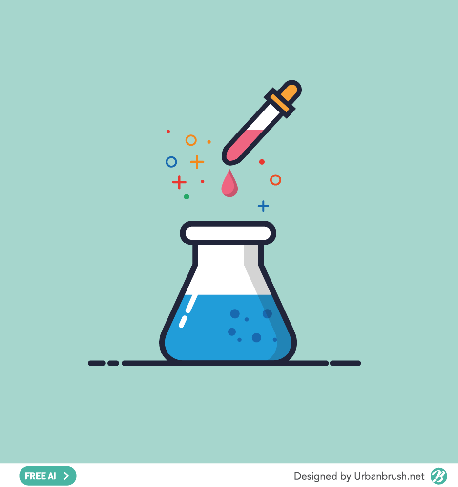 Hi. Urban Brush’s Master Creator Tommy. The image below is a sample of the experimental illustrations ai file. Illustration image depicting the tools used in the laboratory. It is an illustration image that expresses the moment when the liquid of the eyedropper used in the laboratory falls on the beaker. It is an illustration image that can be used in categories related to chemical experiment, reaction, heating, cooling, stirring, science and so on. Download the experiment illustration vector file and use it in the category related to science.