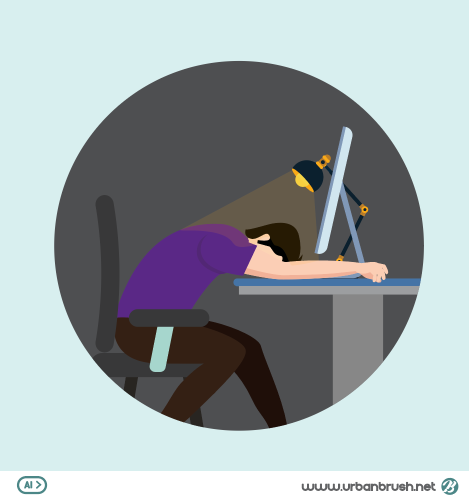 Hi. Urban Brush’s Master Creator Tommy. The image below is a fatigue illustration ai free sample. It is an illustration image that depicts a person falling asleep on a desk. It is an illustration image depicting a person who is tired during work and resting on the desk and resting on the desk. This is an illustrative image that can be used in categories related to fatigue, recovery, overwork, overwork, rest, nap, and more. Fatigue Restoration Illustration ai Download the free illustrations vector file and apply it to the design related to relaxation.