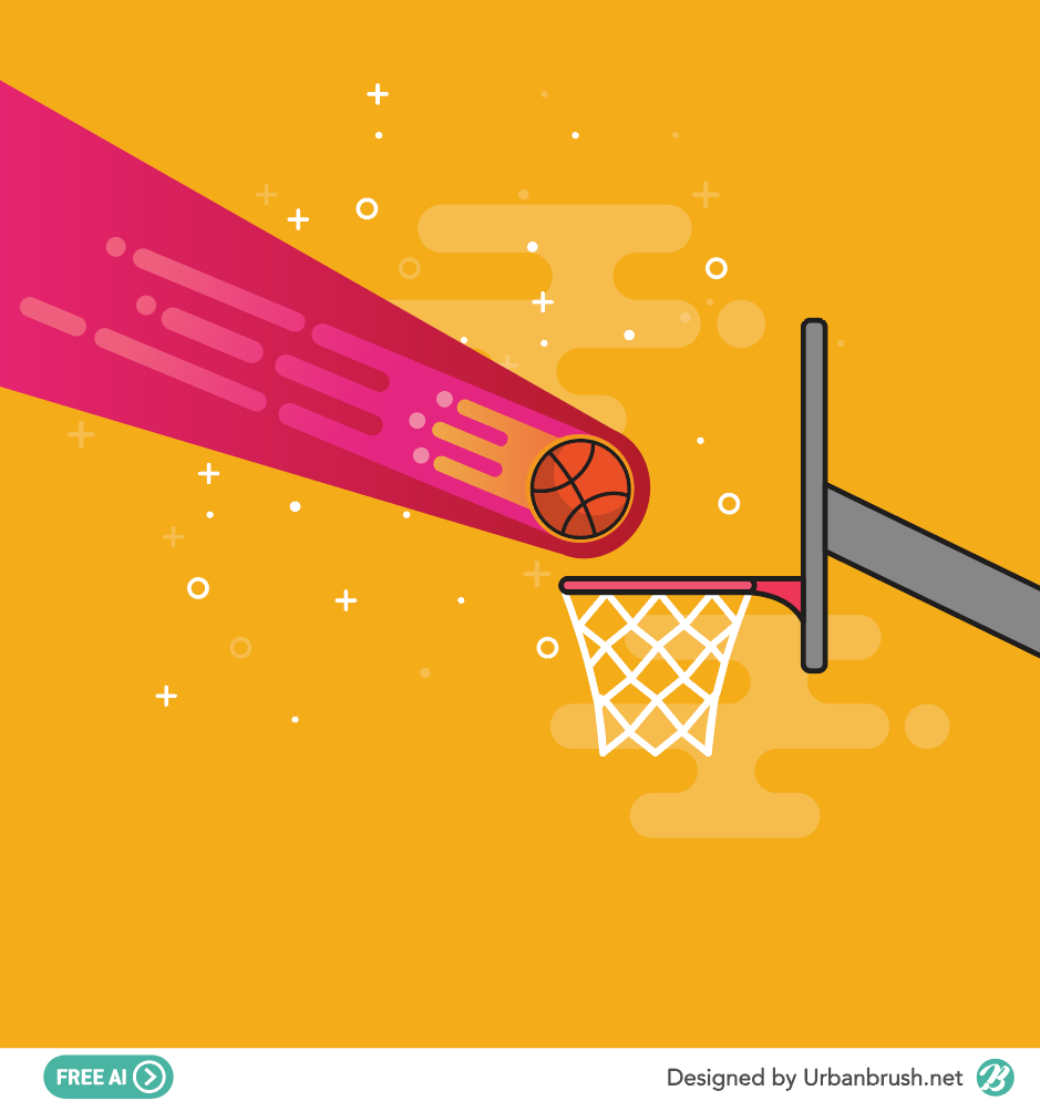 Hi. Urban Brush’s Master Creator Tommy. The image below is a sample of ai file with a fireworks shot. It is an illustration image depicting the light of a basketball flying toward a basketball goal with a light. Around the flame basketball, the image is emphasized with a sparkling effect. Changing the ball type can be applied to various sports. Download the fireworks shot illustration vector file and use it for sports related design.
