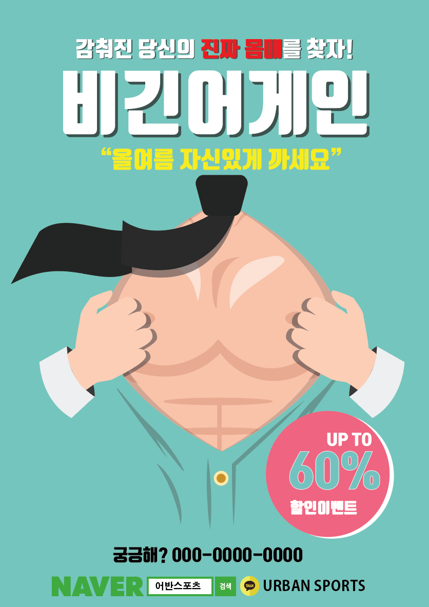 Hi. Urban Brush’s Master Creator Tommy. Below is a free sample of the flyer sample. The famous scene when Superman transforms is expressed in the muscular nose hidden in a shirt. It is a phrase that appeals to men in the summer, and it contains a message asking them to exercise in order to reveal their hidden body. It is an illustrative image suitable for use in categories related to fitness club fliers, fitness flyers, exercise flyers, and diet flyers. Download the fitness club flyer vector file and use it to make exercise flyer.