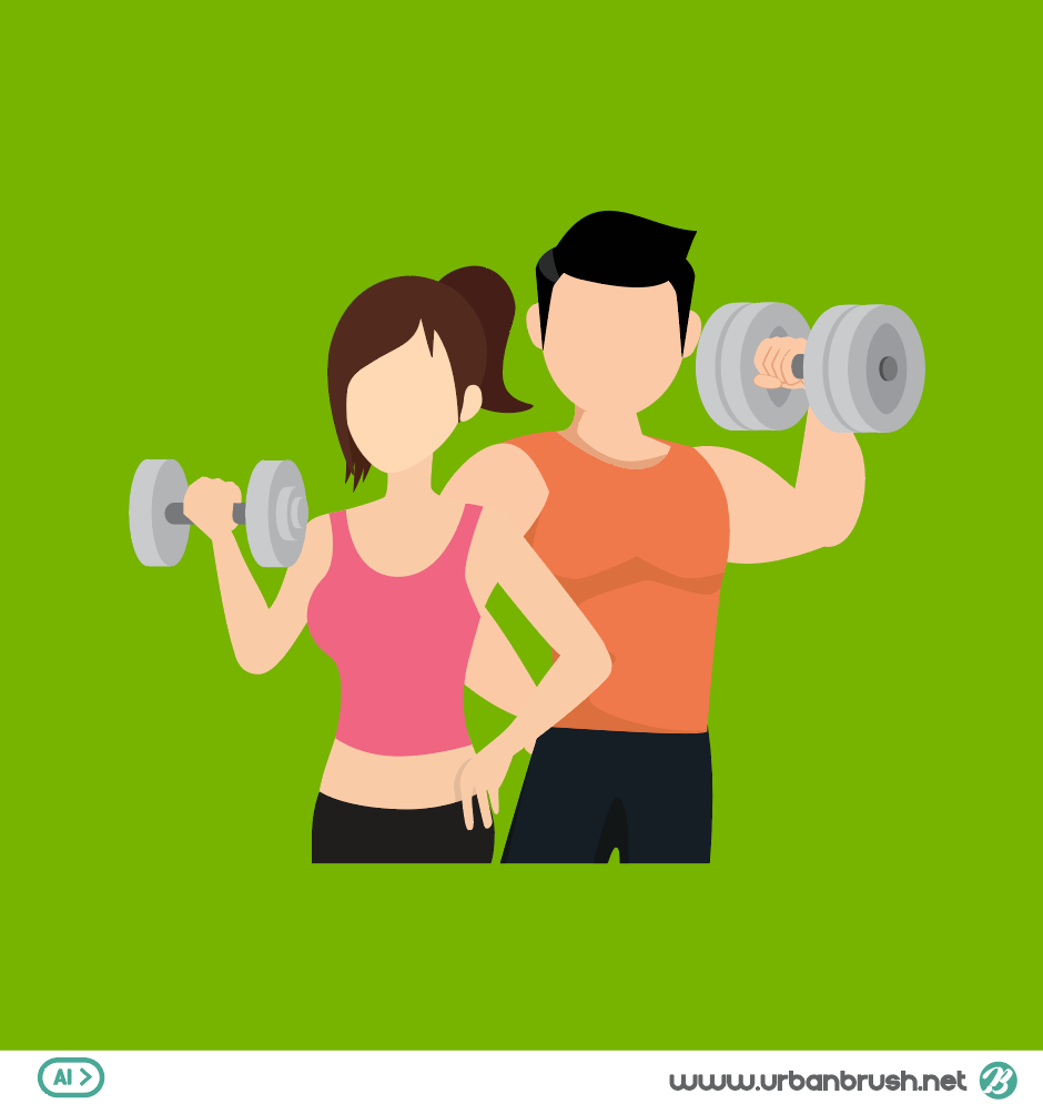 Hi. Urban Brush’s Master Creator Tommy. The image below is a sample of ai file illustrations of the health trainer. It is an illustration image that depicts a scene in which a man and a woman are holding a dumbbell and posing to remind the trainer of a gym. It is an illustration image depicting a scene where a man and a woman are holding a dumbbell by hand wearing a sleeveless Nishi T-shirt, respectively. Ideal for use in categories related to health, fitness, trainers, personal pt, dumbbells, barbells, sports, sports and more. Download the fitness trainer illustration vector file and apply it to the design related to exercise.