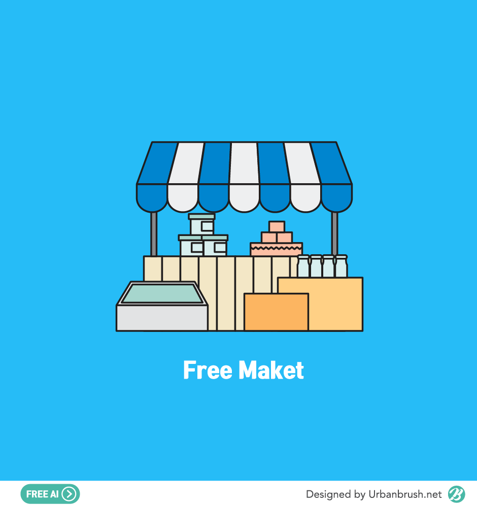 Hi. Urban Brush’s Master Creator Tommy. The image below is a sample of ai file with a free market logo illustration. It is a logo illustration that can be utilized in the free market which sells various goods freely in a small booth. It is an illustration image depicting a variety of things being put on a wooden newsstand with eaves and eaves. Ideal for use in categories related to free markets, street stalls, free markets, night markets, street markets, salem venues, and bazaars. Download the free Market logo illustration vector file and use it for design related to the sales department.